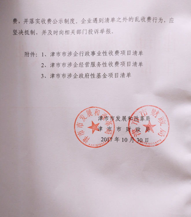 关于公布津市市涉企收费(基金)项目清单的通知