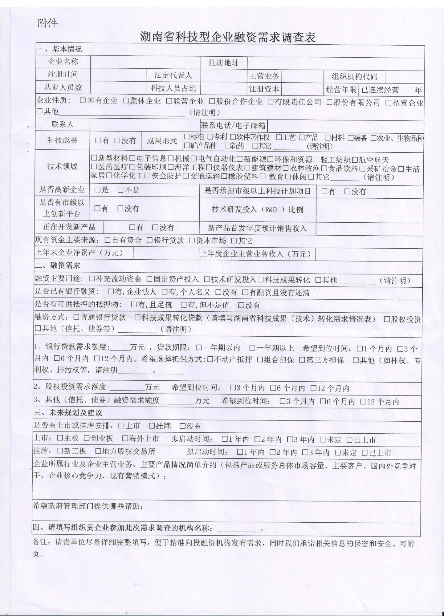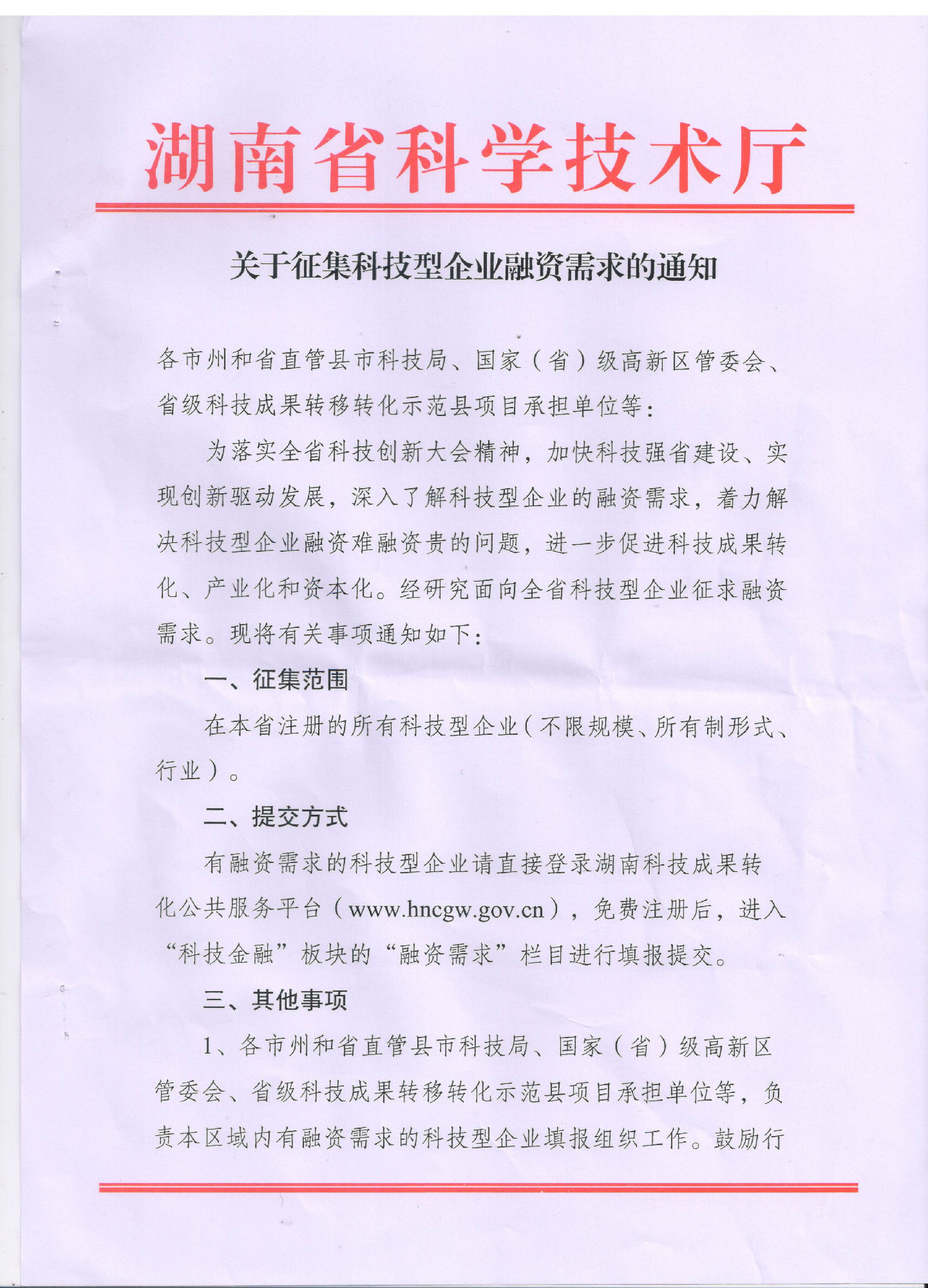 关于征集科技型企业融资需求的通知