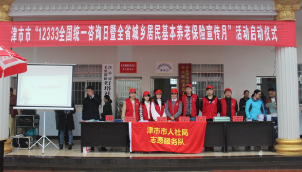 3月30日是12333全国统一咨询日暨全省城乡居民基本养老保险宣传月的启动日,津市市人社局在毛里湖镇灯塔村开展“以让更多的人享有城乡居民养老保险”为主题的宣传月活动启动仪式,津市市人社局青年志愿者迅速参与其中,配合局农村养老保险中心的工作人员,进行政策宣传、现场咨询、发放宣传资料、提供现场问题解答等。