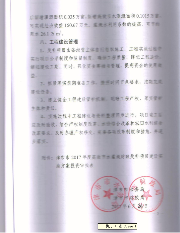 关于津市市高效节水灌溉财政奖补项目实施方案的批复