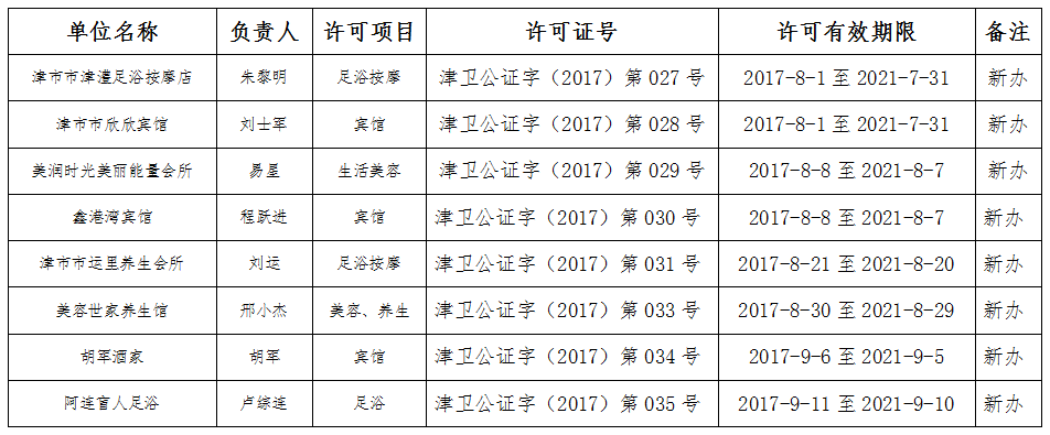 2017年三季度行政许可公示