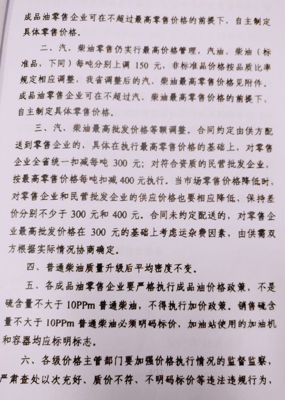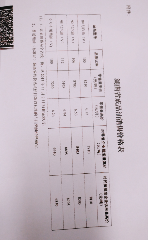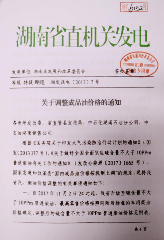 关于调整成品油价格的通知 湘发改电[2017]7号