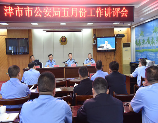 6月5日,津市市公安局召开了5月份工作讲评会,会议由党委副书记、常务副局长卜合明主持,津市政府副市长、公安局长戴志刚出席会议,政委彭云森,在家局党委成员,以及二层单位“一把手”参加。