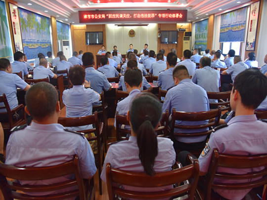 8月4日,津市市公安局召开了“回应民调关注打击违法犯罪”专项行动部署会。津市政府副市长、公安局长戴志刚出席会议,会议由常务副局长卜合明主持,政委彭云森、在家局党委成员,以及二层单位“一把手”和副职以上骨干参加。
