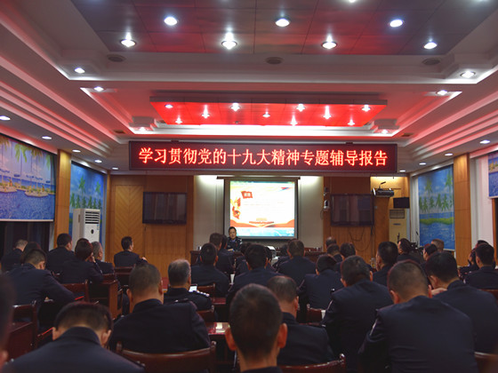 11月7日晚,局党委书记、局长戴志刚同志进行宣讲,带头深入学习十九大精神。宣讲由局党委副书记、政委彭云森主持,局党委班子、局机关民警集中在局务会议室参加学习。