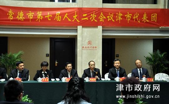 12月28日下午,常德市主要领导到津市代表团驻地集中看望出席常德市第七届人民代表大会第二次会议的津市代表团全体代表。常德市委书记周德睿,市委副书记、代市长曹立军,市委副书记朱水平,市人大常委会党组书记、副主任沈习淼,市委常委、市纪委书记罗翠林,市委常委、市委秘书长罗先东等领导参加慰问。