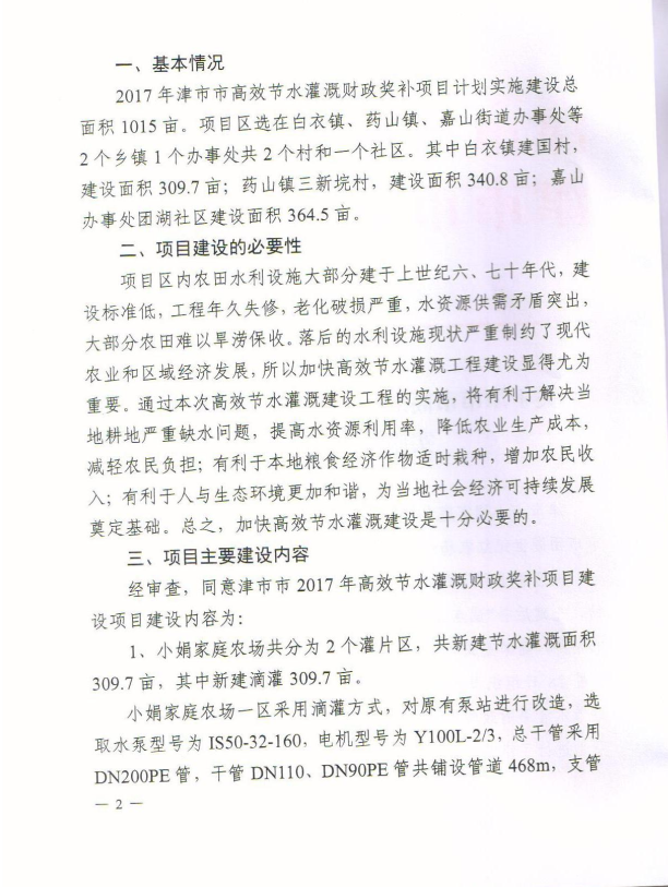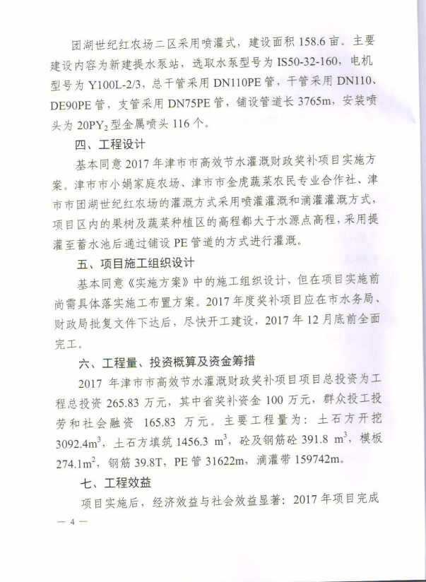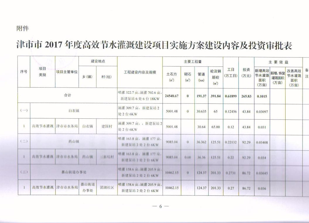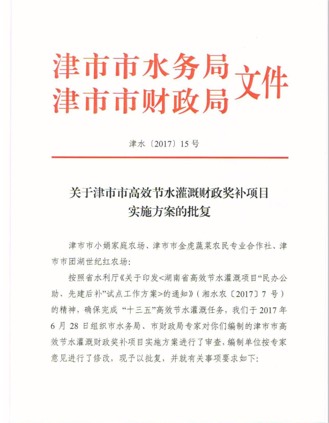 关于津市市高效节水灌溉财政奖补项目实施方案的批复