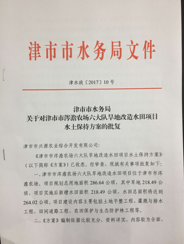 关于对津市市涔澹农村六大队旱地改造水田项目水土保持方案的批复