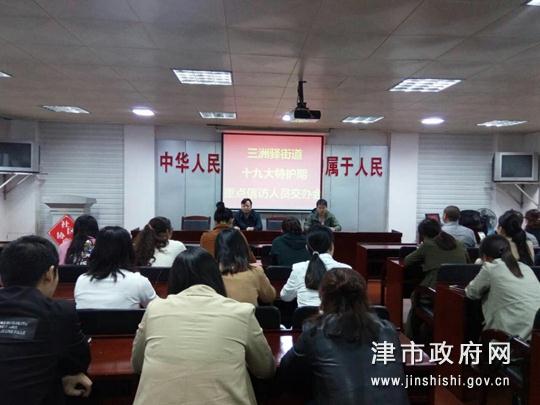 为明确十九大特护期安保信访维稳工作的相关任务与纪律要求,10月10日,三洲驿街道办事处在四楼会议室召开十九大特护期信访维稳工作推进会,街道全体干部、各社区书记、主任、综治专干共计60人参加了会议。