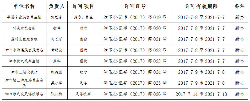 2017年三季度行政许可公示