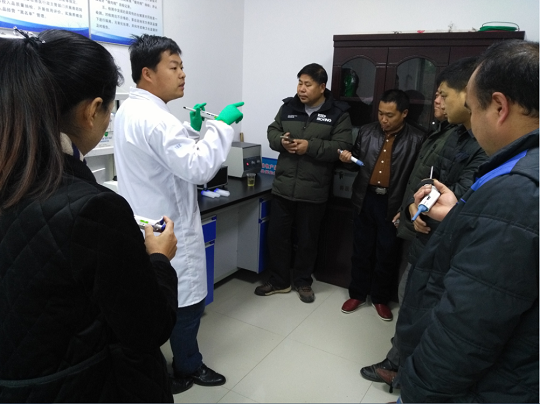 为进一步提高我市基层畜禽水产品质量安全检测和监管能力,不断提升基层检测人员业务水平,12月7日,市畜牧兽医水产局在药山镇畜禽水产品质量安全监管站举办了畜禽水产品快速检测技术培训班。邀请了仪器设备供应商武汉华美生物工程有限公司技术员授课,市畜牧兽医水产局相关人员和全市4个镇动物防疫站12名技术人员参加了培训。